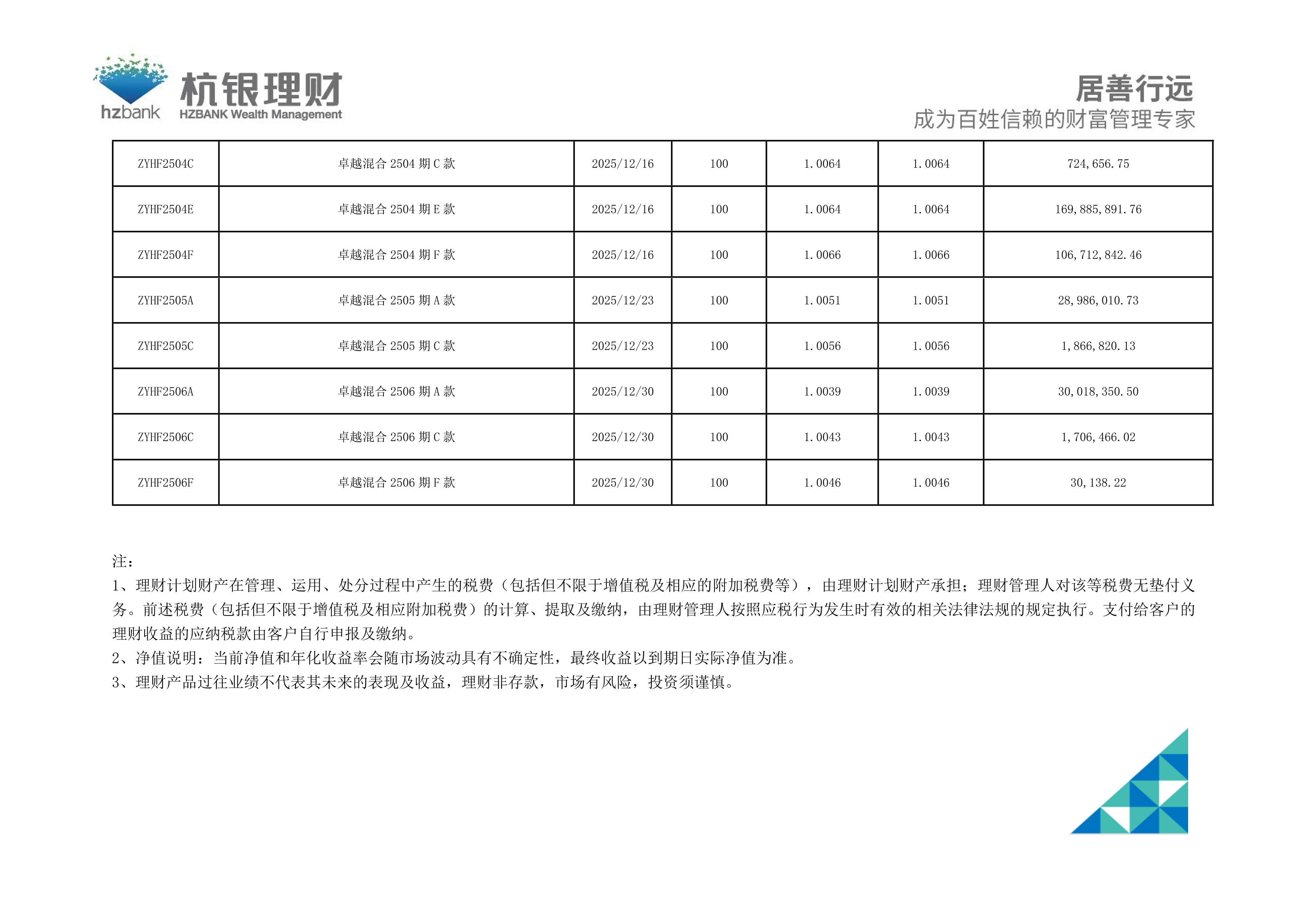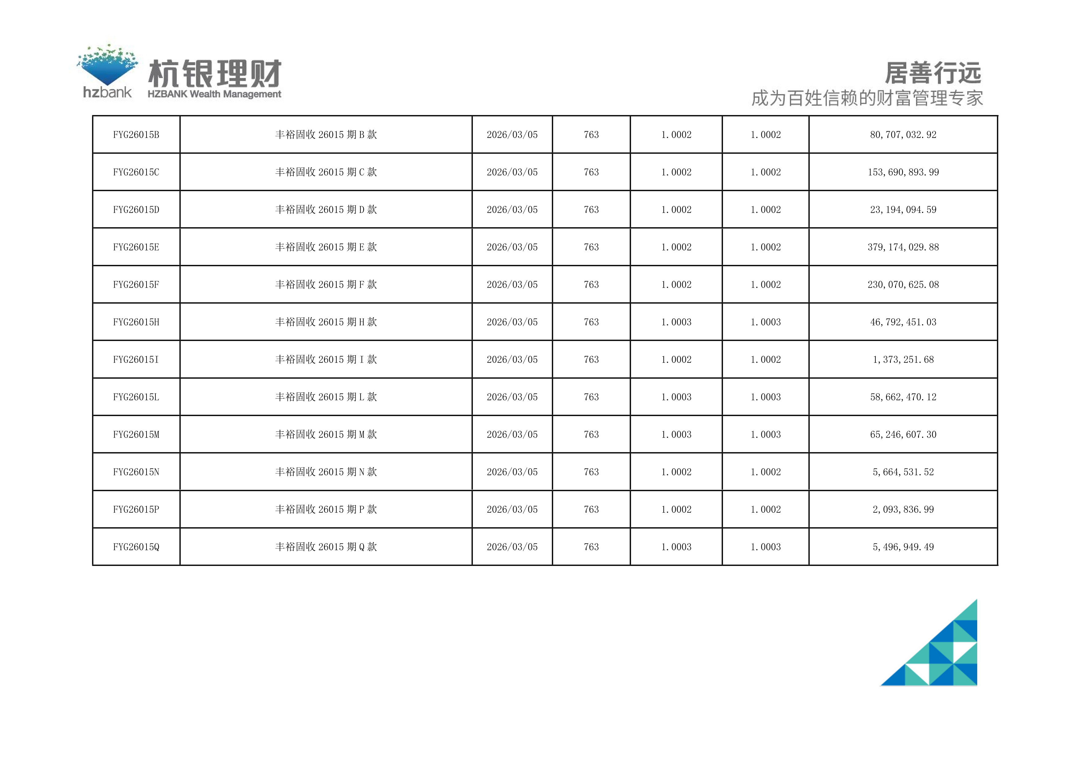 杭银理财-公募封闭式净值公告(20260317)
